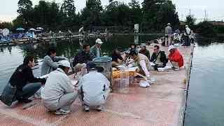 | 本来なら一週間前の10月3日が予定となっていたが、生憎の天候で一週間延期となってしまった。3日であれば40名近い申し込みがあったが、1週間後は連休初日ということもあり15名の参加者での開催となった。 台風18号が日本列島を縦断していって、前日は強風が残っていたが、当日は風のない穏やかな陽気になった。朝方はジャケットを着ていた方も多かったが、気温も上昇し気持ちよい秋の日になった。 受付は隼人大池様の食堂のテーブルをお借りして、朝7時40分から始まった。受付では名前の確認、参加費受払い、クラス分け、釣り道具やテキストを配布した。 開会式では日本釣振興会後埼玉県支部理事から挨拶をさせていただき、スケジュール説明の後、2つのグループに分かれて、桟橋で釣り教室が開催されました。 魚は大型のへら鮒が釣れることで有名な隼人大池らしい大きな魚を、参加者全員が釣ることができました。 教室終了時間の12時にアンケート記入後、閉会式、記念撮影をして解散となりましたが、多くの参加者が残って、15時まで釣りを楽しみました。 |