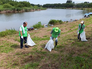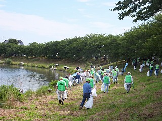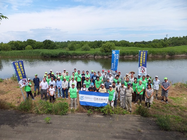 | 公益財団法人日本釣振興会 埼玉県支部(岡田信義支部長)では6月26日(日)に新河岸川放水路・びん沼川環境浄化運動に参加いたしました。 この運動は埼玉県川越県土整備事務所と富士見市南畑地区社会福祉協議会が楽しく利用できる「良好な河川環境」を維持するために地域及び各団体に呼びかけて毎年実施しているもので、公益財団法人日本釣振興会 埼玉県支部も毎年参加しております。 新河岸川放水路、びん沼川は、さいたま市、川越市、富士見市、ふじみ野市の4市にまたがり、荒川に流入する一級河川で、都市化の進む中で貴重な水辺空間として、魚釣りなどで多くの人々に利用されていますが、周辺には空缶・ゴミなど不法投棄も多く、対策に苦慮しております。 今回の運動には流域全体で約650名、15団体が参加し、公益財団法人日本釣振興会 埼玉県支部からは70名が参加しました。埼玉県支部役員・会員のほか、埼玉県釣りインストラクター連絡機構、NPO法人バーブレスフック普及協会、碧水会、ビン沼会の方々にご協力いただきました。 当日は天候に恵まれて、午前8時30分に集合し埼玉県職員の説明のあと約1時間清掃をおこないました。 最後に公益財団法人日本釣振興会 埼玉県支部 宮澤政信最高顧問があいさつをして、集合写真を撮って解散いたしました。今回は4月にゴミ拾いをおこなったせいかゴミの量は少なかったようです。 |